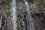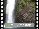 柱状節理の断崖から落ちる白糸の滝
