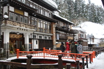 雪の銀山温泉街「高層木造旅館」