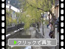 川沿いの柳並木と残雪