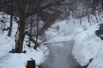 積雪と温泉川の湯煙