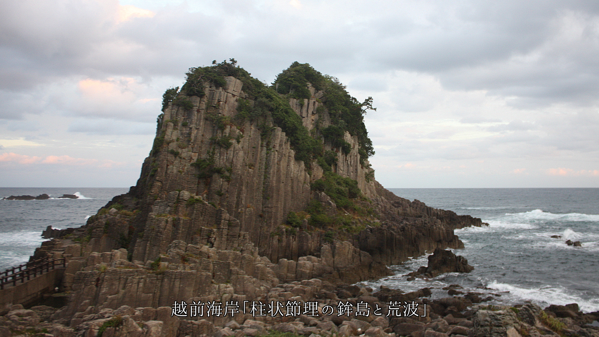 越前海岸「柱状節理の鉾島と荒波」