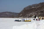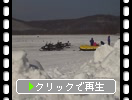 氷結の網走湖とスノーモビル