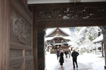 雪の尾山神社「神門と拝殿」