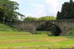夏の稲田と通潤橋